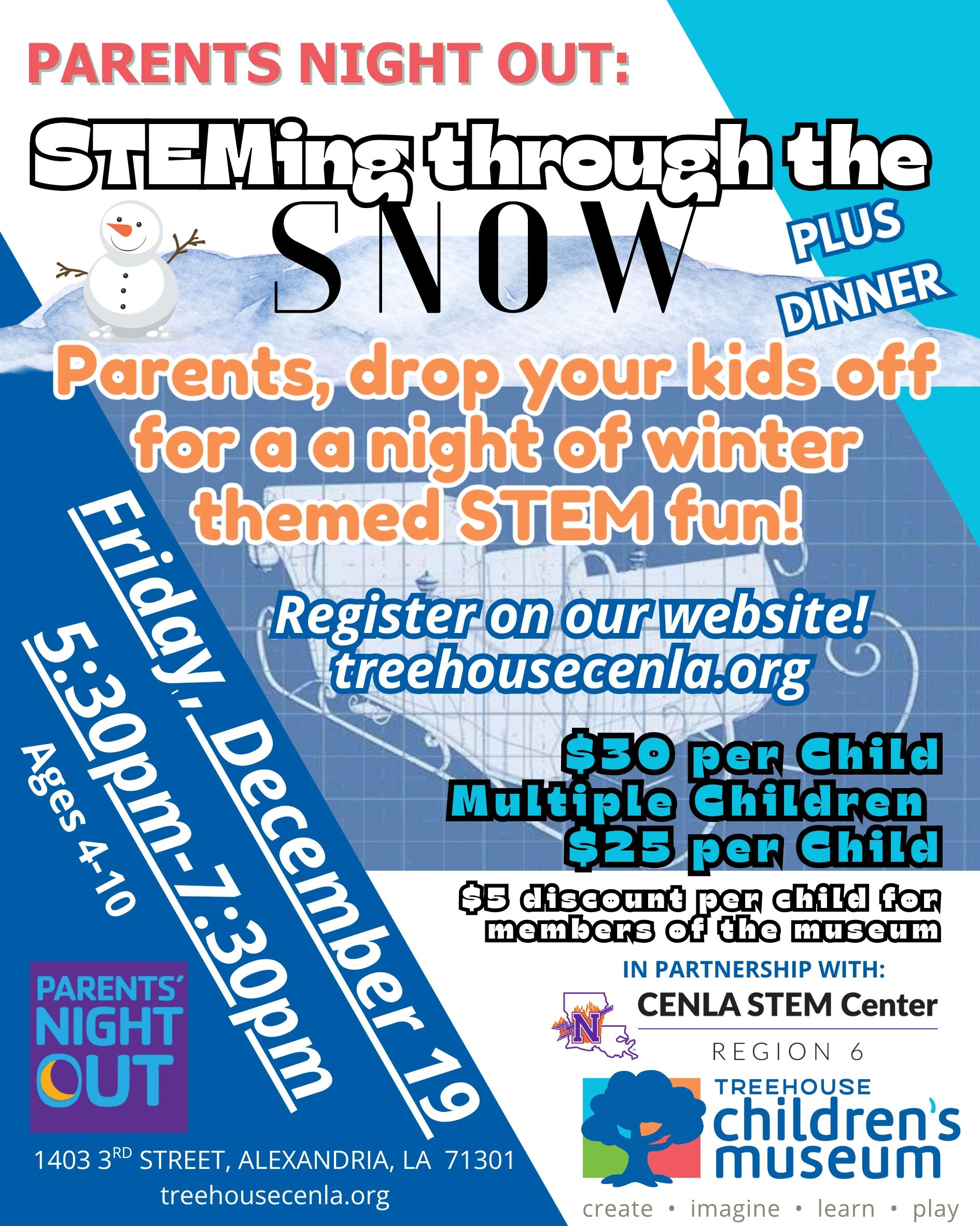 Parents, drop your kids off for an evening of winter themed STEM fun while you enjoy a night off!